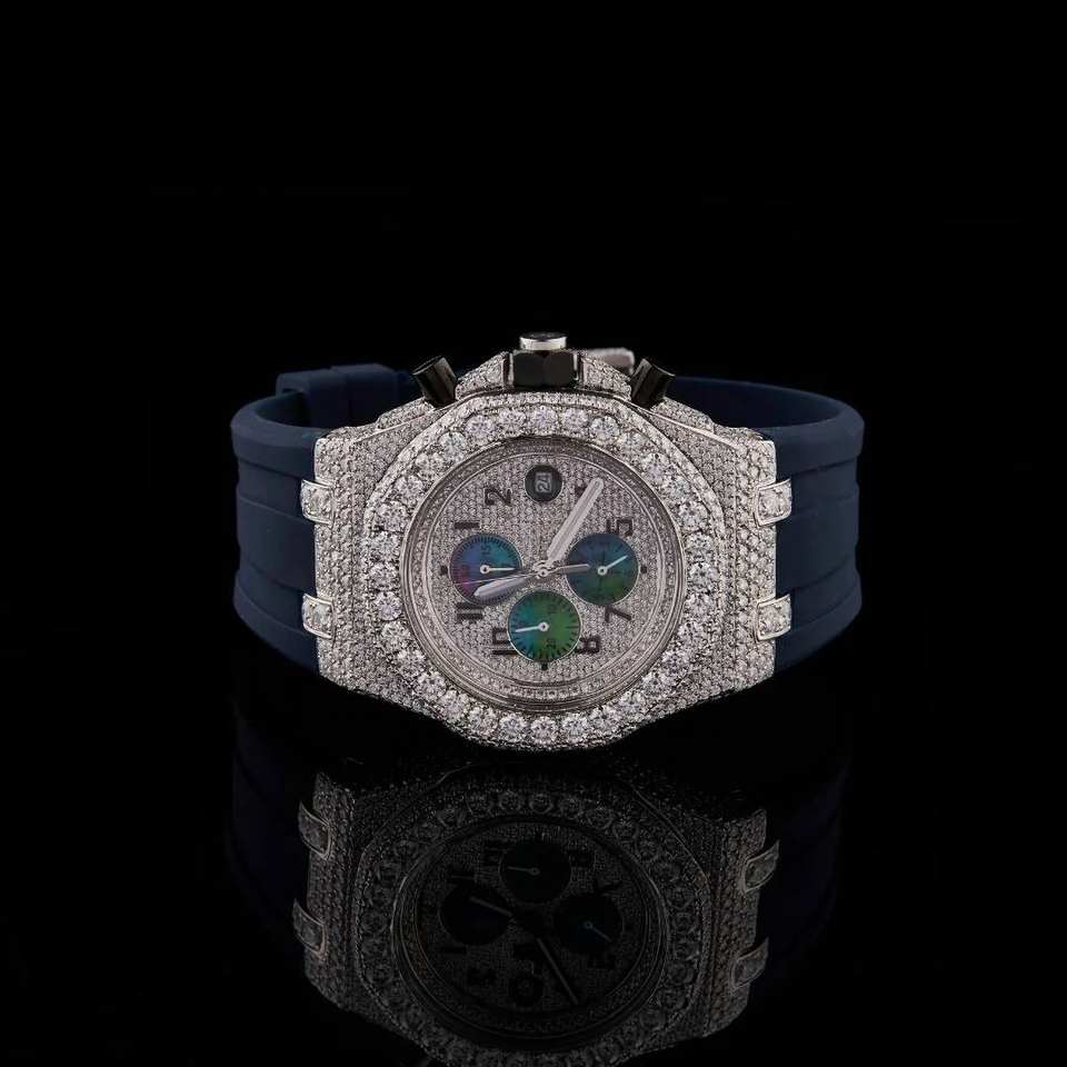 แบล็คโอเชียนจิวเวลส์ เอ.พี. นาฬิกาข้อมือควอตซ์อนาล็อกหรูหรา ซัมโบ มอยส์ซาไนต์ ออโตเมติก 41 มม. 3 บาร์ กันน้ำ ตัวเรือนสแตนเลสสตีล