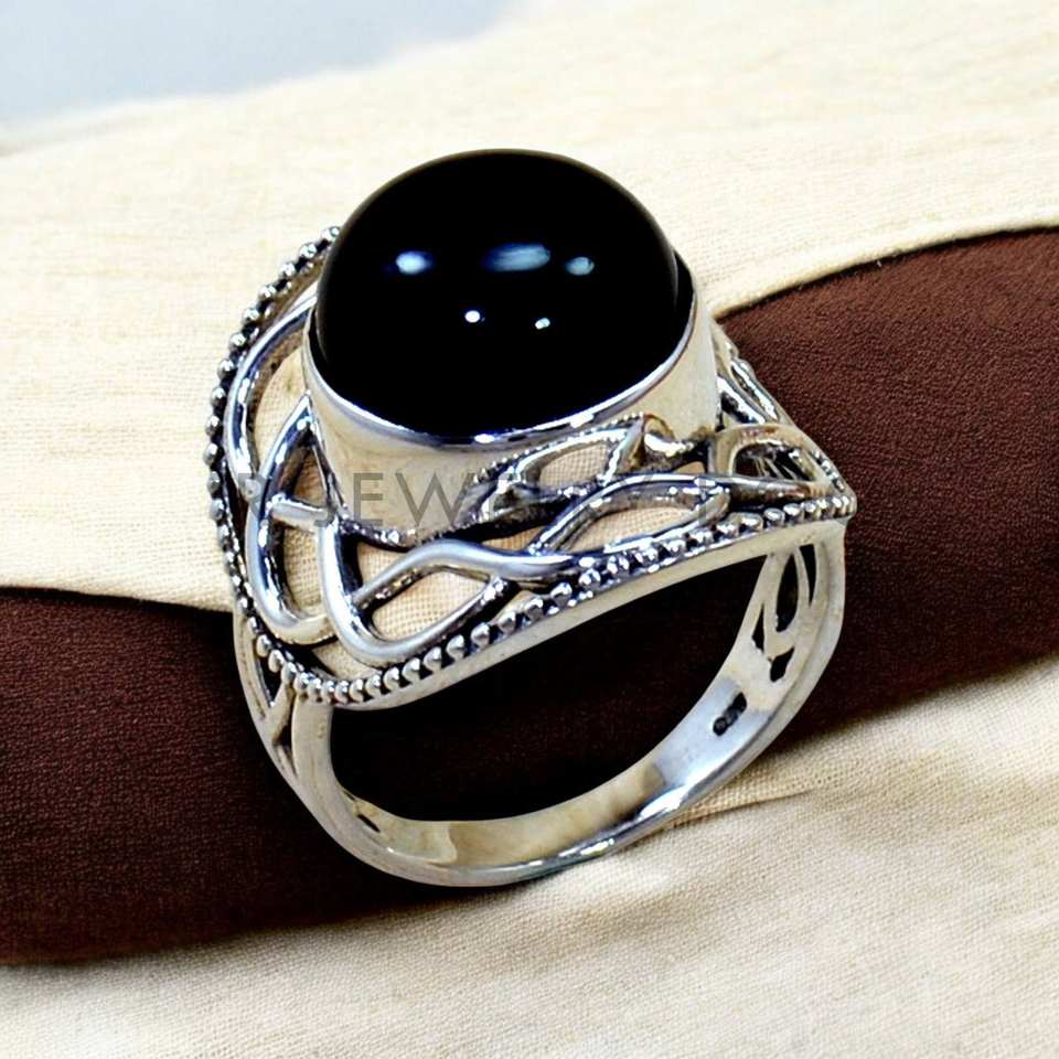 แหวนเงินแท้ 925 ประดับพลอยแบล็คออนิกซ์ งานแฮนด์เมด เครื่องประดับอัญมณีธรรมชาติ