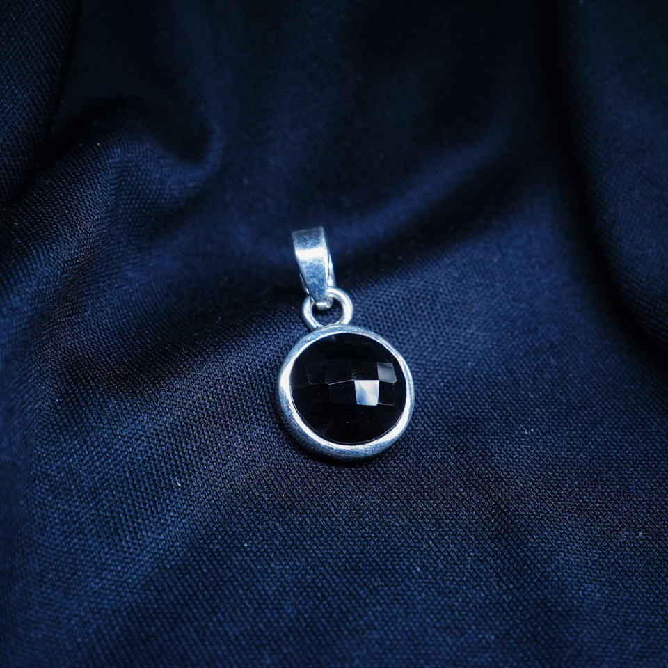 สีดำนิลเบาะเหลี่ยมเพชรพลอยกลมในจี้เงินสเตอร์ลิง925