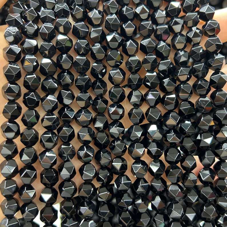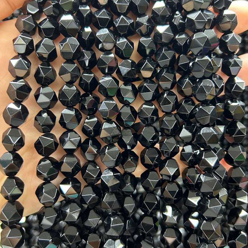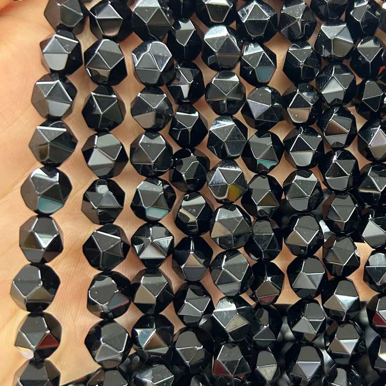 ลูกปัดออนิกซ์สีดำทรงเหลี่ยม ลูกปัดหินธรรมชาติแบบก้อน สำหรับทำเครื่องประดับ งานฝีมือ DIY