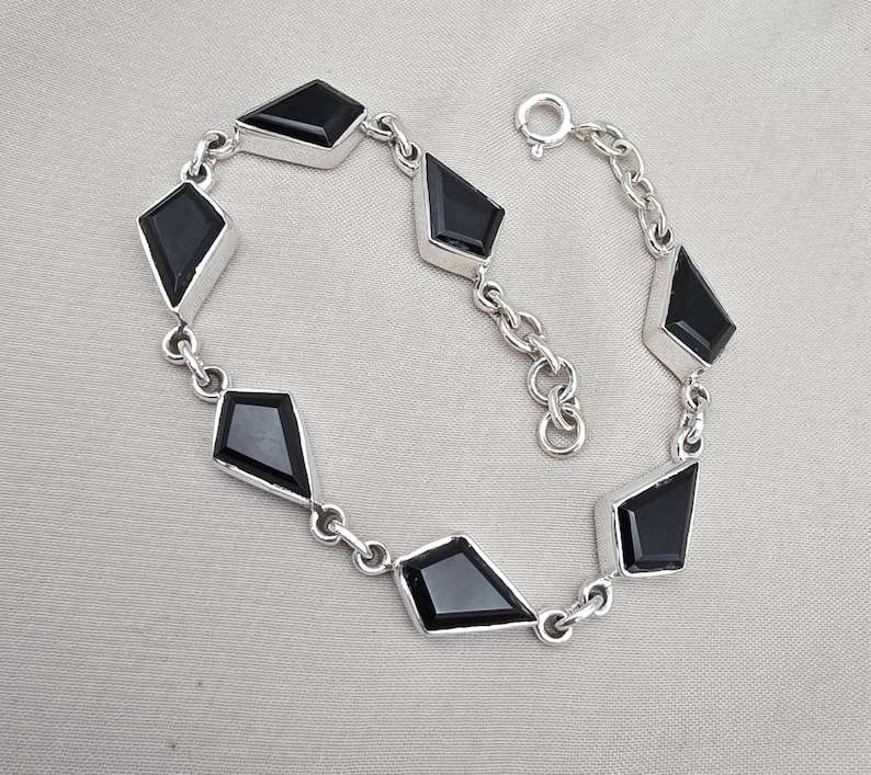 สร้อยข้อมือหินออนิกซ์สีดำ เงินแท้ 925