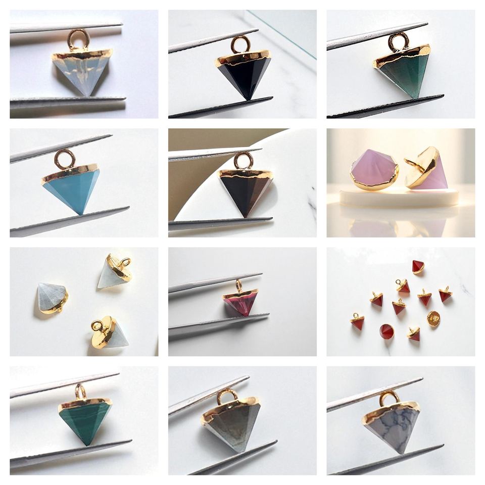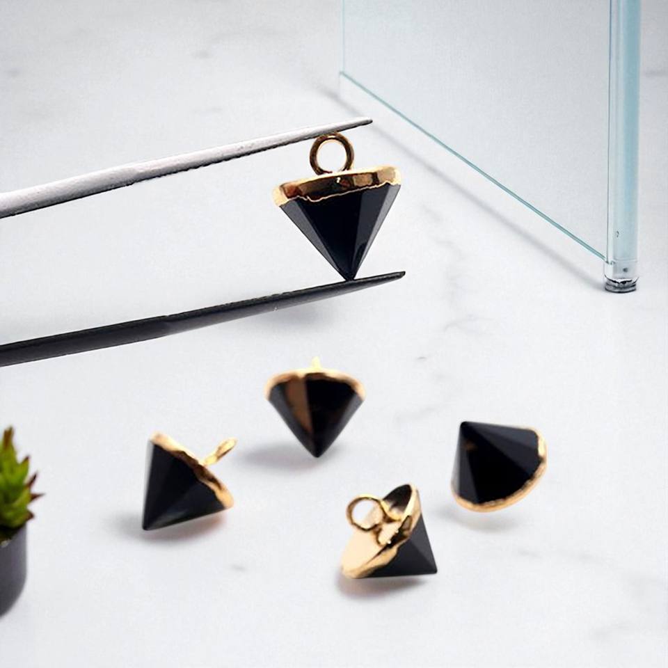 จี้พลอยโอนิกซ์สีดำ10X11มม. ทรงกรวยชุบทอง