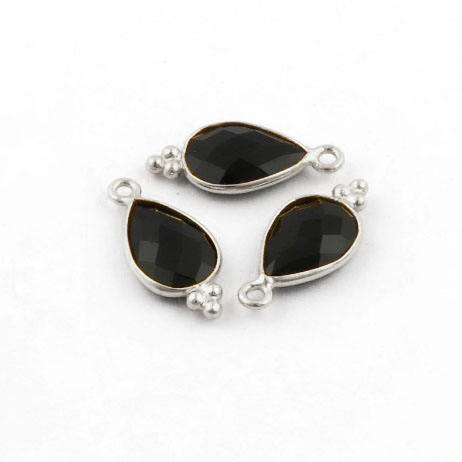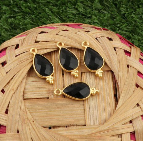 เซ็ตจี้รูปลูกแพร์พลอยโอนิกซ์สีดำขนาด12x8มม. พร้อมโรเดียมและเวอร์เมิลสีทองเสน่ห์แฟนซี