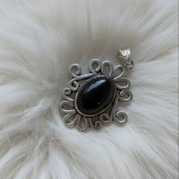 สร้อยคอและจี้เงินเยอรมันประดับพลอยออนิกซ์สีดำสำหรับผู้หญิง เครื่องประดับสแตนเลสอย่างดี จี้สั่งทำพิเศษสำหรับผู้ชายแบบเดี่ยว