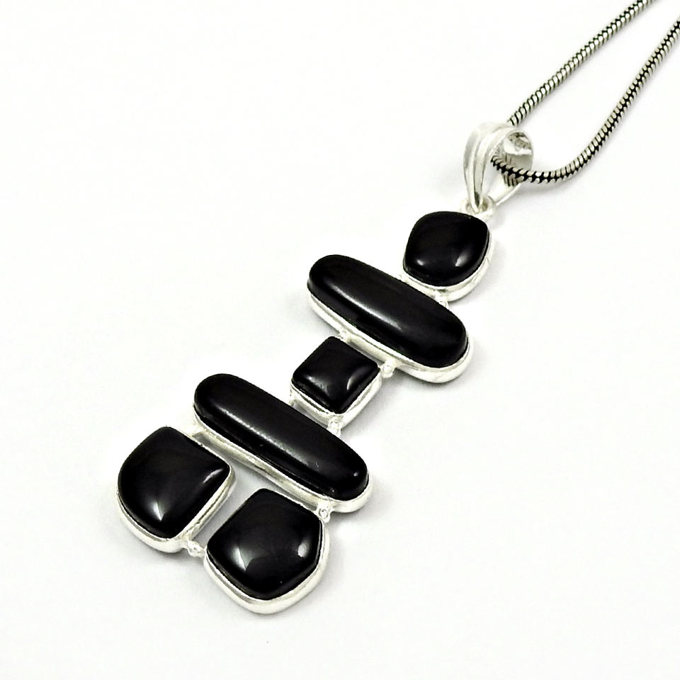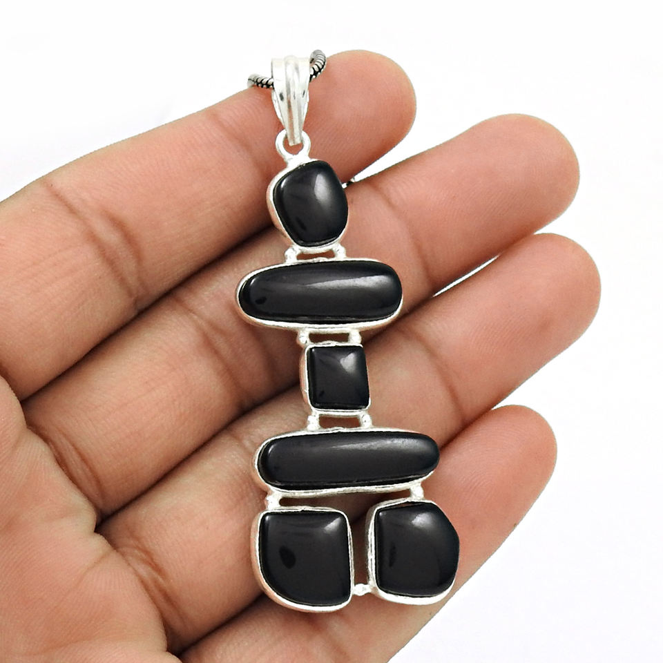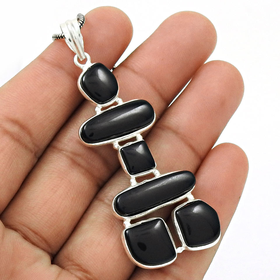 จี้โอนิกซ์สีดำสินค้าขายดี925สเตอร์ลิงอัญมณีธรรมชาติขายส่งอินเดีย