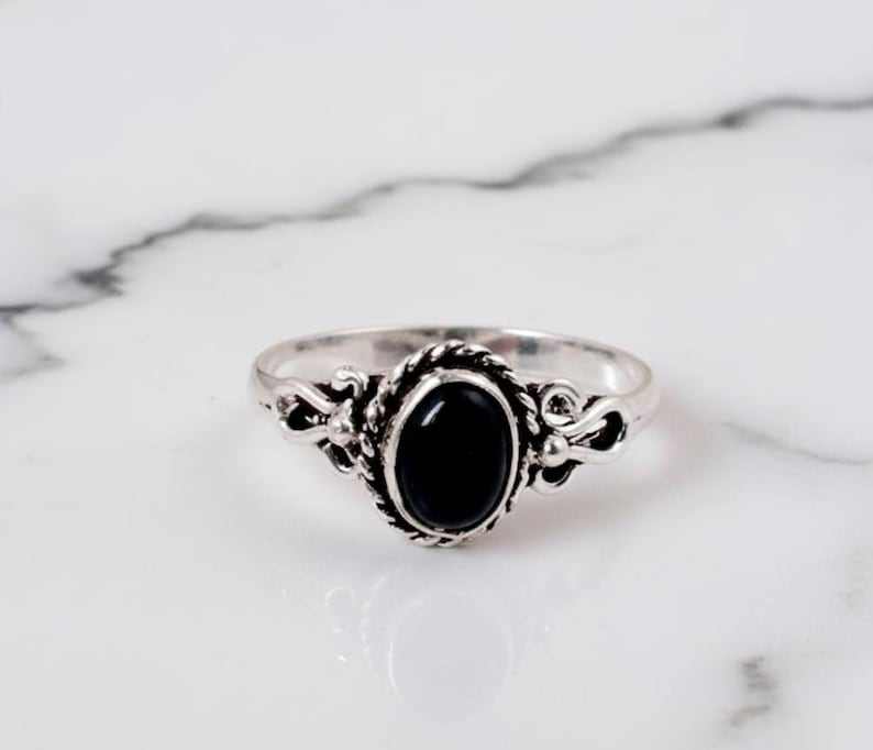 แหวนเงินแท้ทรงรีประดับพลอยแบล็คออนิกซ์ธรรมชาติ ดีไซน์ลายเชือกแบบฟิลิกรี ขอบเงินออกซิไดซ์ สไตล์วินเทจ หรูหรา เหมาะเป็นของขวัญ