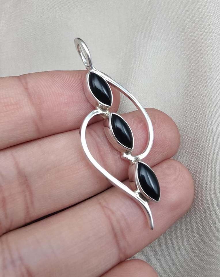จี้ห้อยคอประดับด้วยหินโอนิกซ์แวววาว