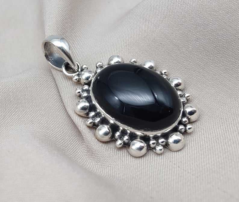 จี้หินออนิกซ์สีดำ เงินแท้ 925 เครื่องประดับทำมือ สำหรับผู้ชายและผู้หญิง สร้อยคอพลอยหายาก ของขวัญสุดหรู