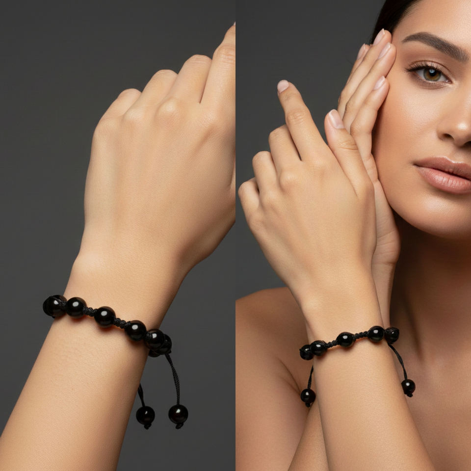 ความบริสุทธิ์ของโลหะมีค่า:โอนิกซ์สีดำธรรมชาติ & ด้ายสี