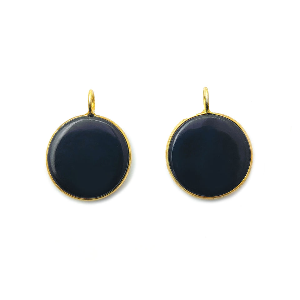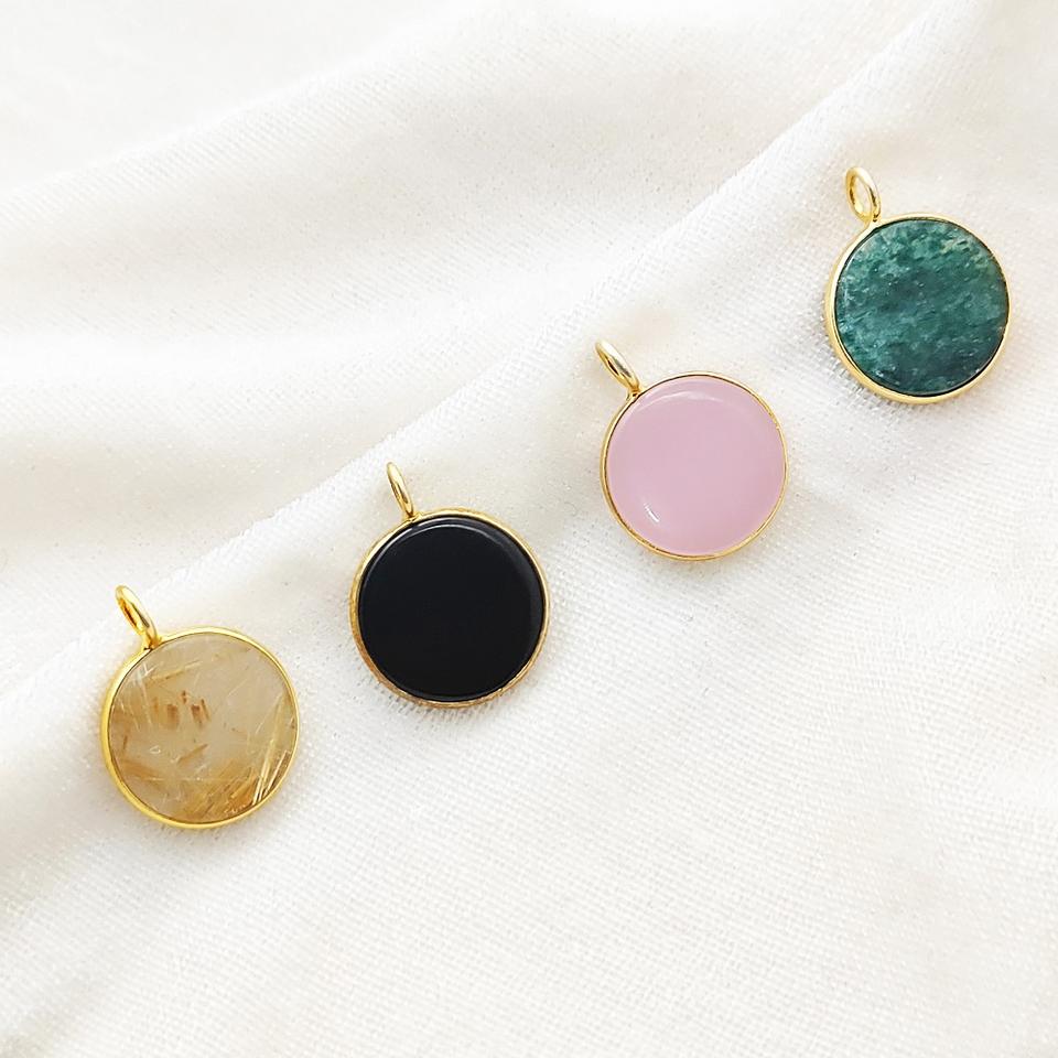 จี้หินออนิกซ์สีดำทรงกลมแบบแผ่น ประดับบนตัวเรือนเงินแท้ชุบทอง รูปทรงเรียบเนียน ขายส่งจากซัพพลายเออร์อินเดีย