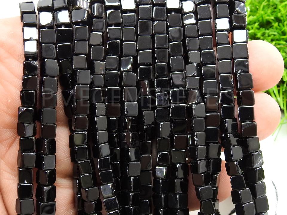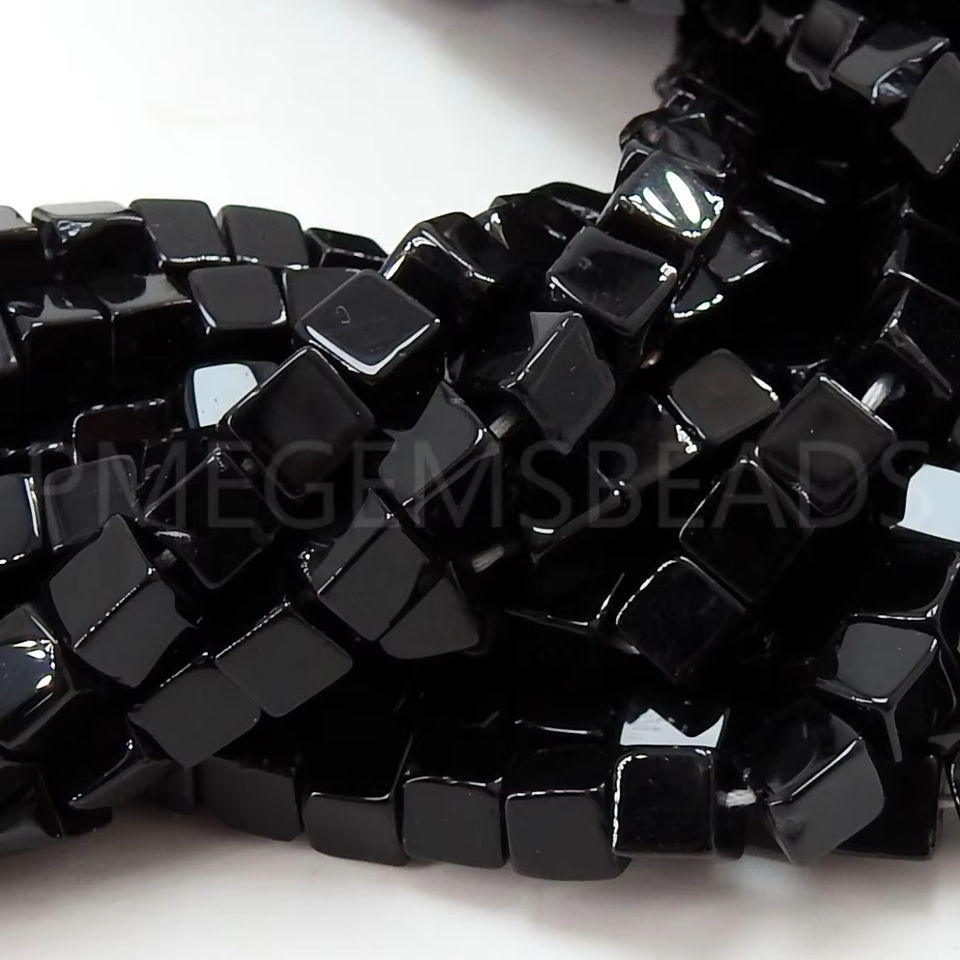 ลูกปัดหินออนิกซ์สีดำเรียบ รูปทรงลูกบาศก์ ขนาด 5 มม. แบบกล่อง ความยาว 16 นิ้ว ได้รับการรับรองสำหรับการทำเครื่องประดับ จำหน่ายแบบขายส่ง