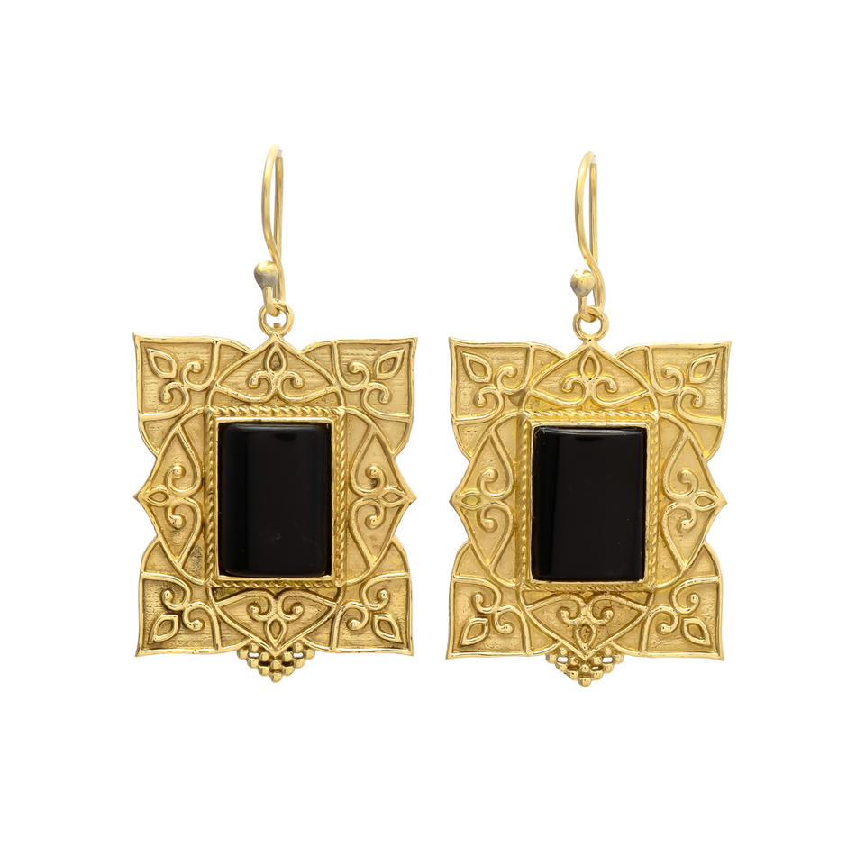 สีดำนิลสแควร์รูปร่างสีดำพลอย Birthstone ชุบทองทองเหลืองต่างหู