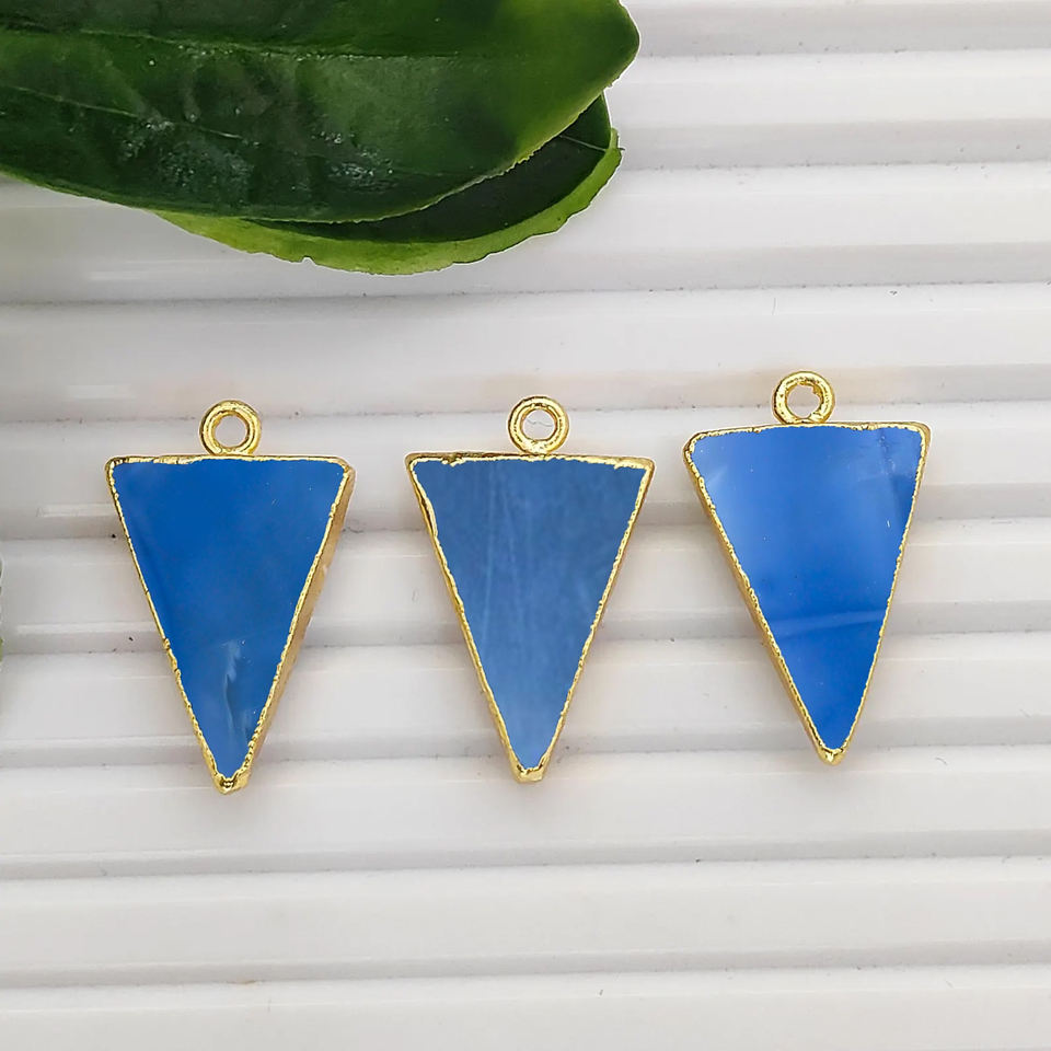 จี้รูปสามเหลี่ยมเคลือบทองคำขาว ขนาด 20x15 มม. ทำจากหินแบล็คออนิกซ์ สำหรับทำเครื่องประดับ