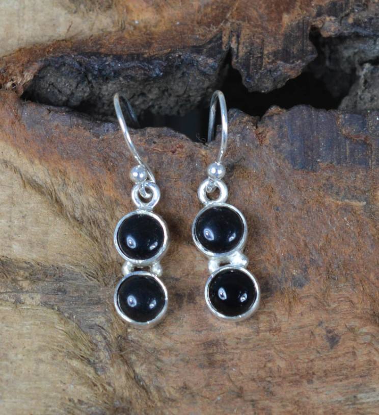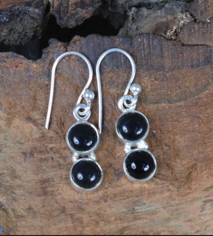 ต่างหูเงินพลอยสีดำธรรมชาติ