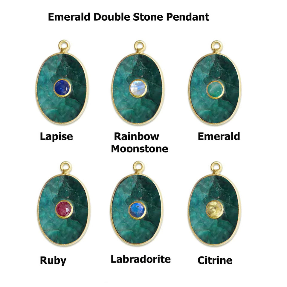 Black Onyx and Emerald Double Gemstone Charms Pendants - 8x12mm Oval Gold Vermeil Bezel Set Gemstone Pendant