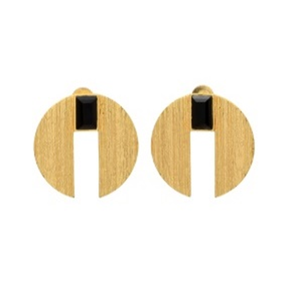 ต่างหูทองเหลืองสีดำนิลและชุบทองดีไซน์ทรงกลม