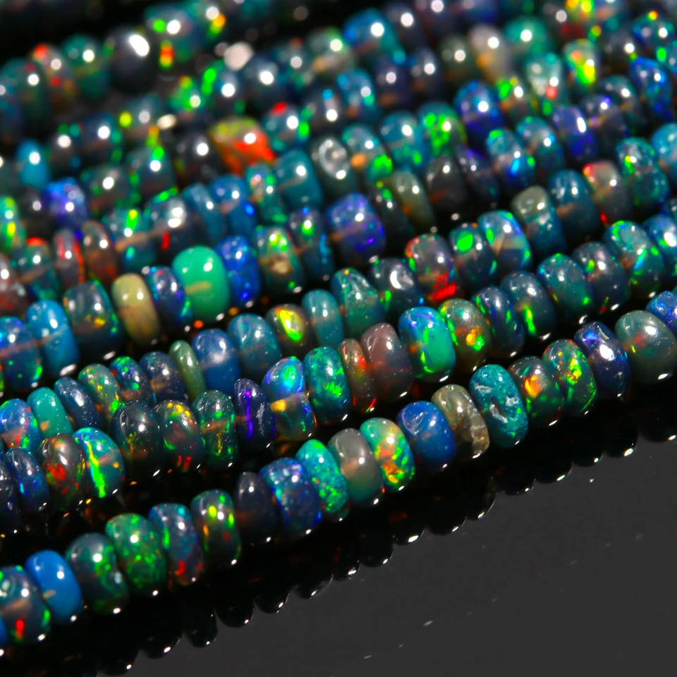 ลูกปัดโอปอลเอธิโอเปียสีดำคุณภาพสูง ทรงรอนเดลเรียบ