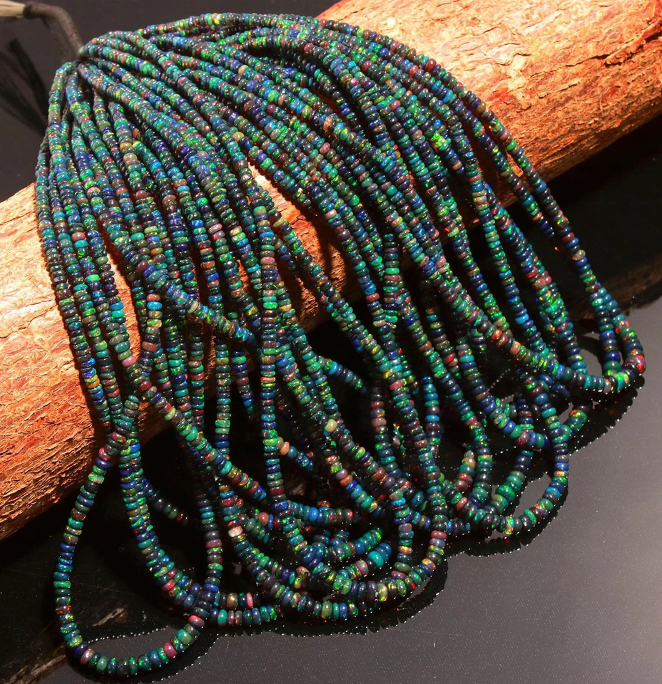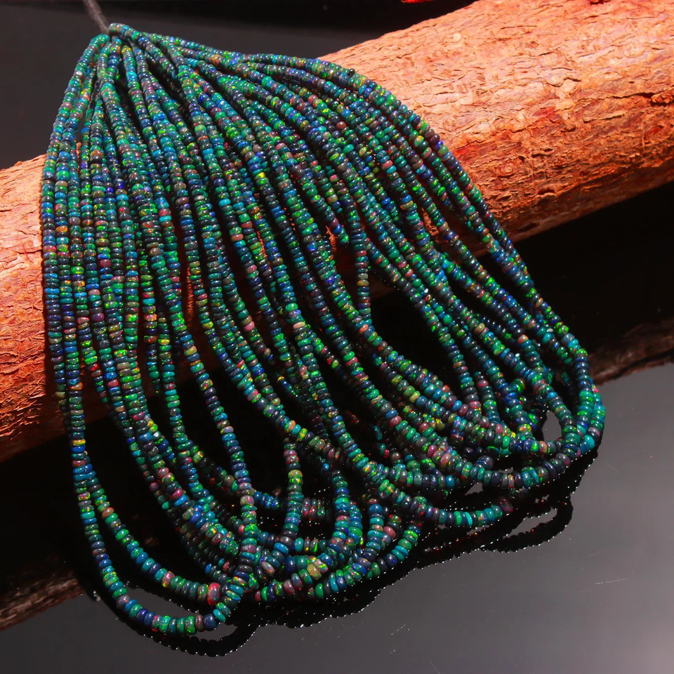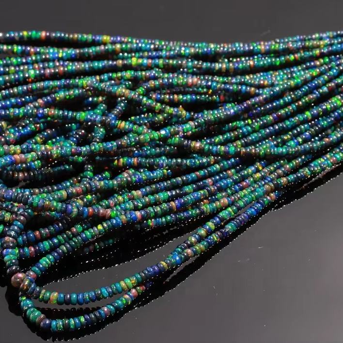 ลูกปัดโอปอลดำธรรมชาติจากเอธิโอเปีย รูปทรงกลมเรียบ ขนาด 3-6 มม. ความยาว 16 นิ้ว สำหรับทำเครื่องประดับ