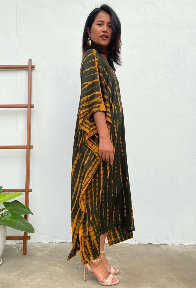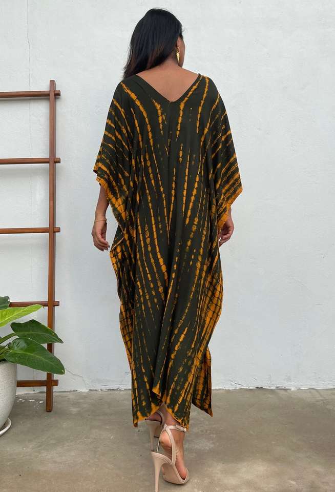 ชุดคาฟตันสีดำส้มลายมัดย้อมสำหรับผู้หญิง ไซส์พลัส เหมาะสำหรับใส่เที่ยวทะเลหรือรีสอร์ท