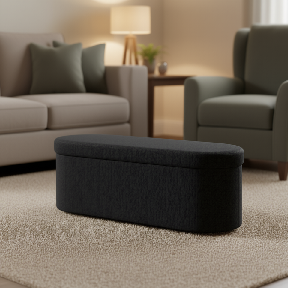 เก้าอี้ออตโตมันทรงรีสีดำบุผ้าขนเท็ดดี้แบบพับได้ เฟอร์นิเจอร์ห้องนั่งเล่น รับน้ำหนักได้ 660 ปอนด์