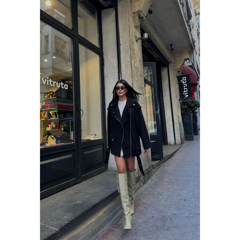 เสื้อแจ็คเก็ตแคชเมียร์สีดำขนาดใหญ่พิเศษสำหรับผู้หญิง