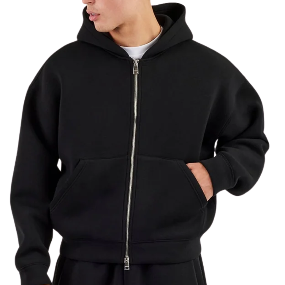 ชุดวอร์มทรงโอเวอร์ไซส์สีดำสำหรับผู้ชายชุดวอร์มขนแกะมีซิปและกางเกงขากว้างชุดลำลองสองชิ้นสำหรับฤดูหนาว