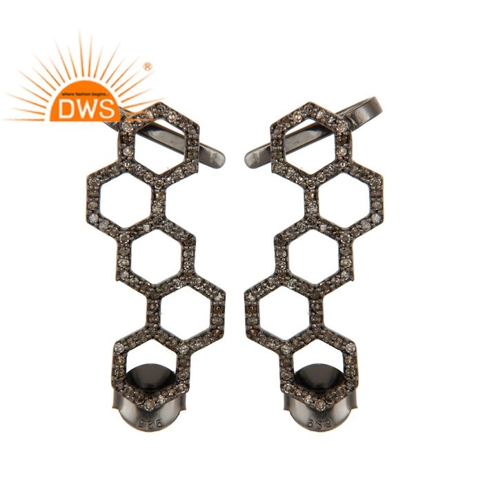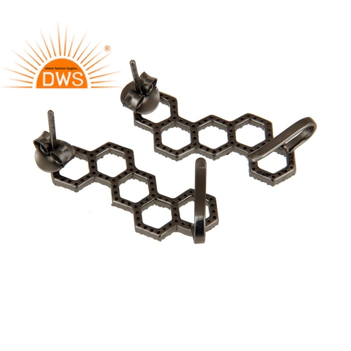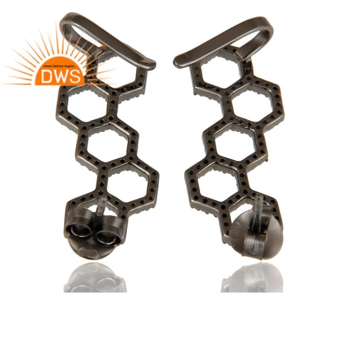 สีดำออกซิไดซ์925เงินออกแบบต่างหูสตั๊ดเครื่องประดับขายส่งปูเพชรต่างหูเครื่องประดับผู้ผลิต