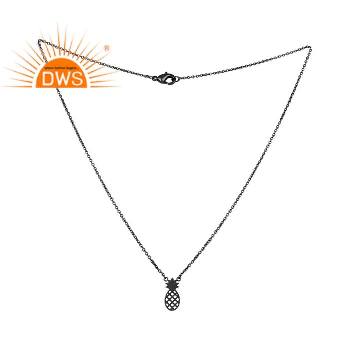 จี้รูปสับปะรดทำมือจากเงินแท้ 925 ชุบโรเดียมดำ พร้อมกรอบประดับเพชร สำหรับผู้หญิง