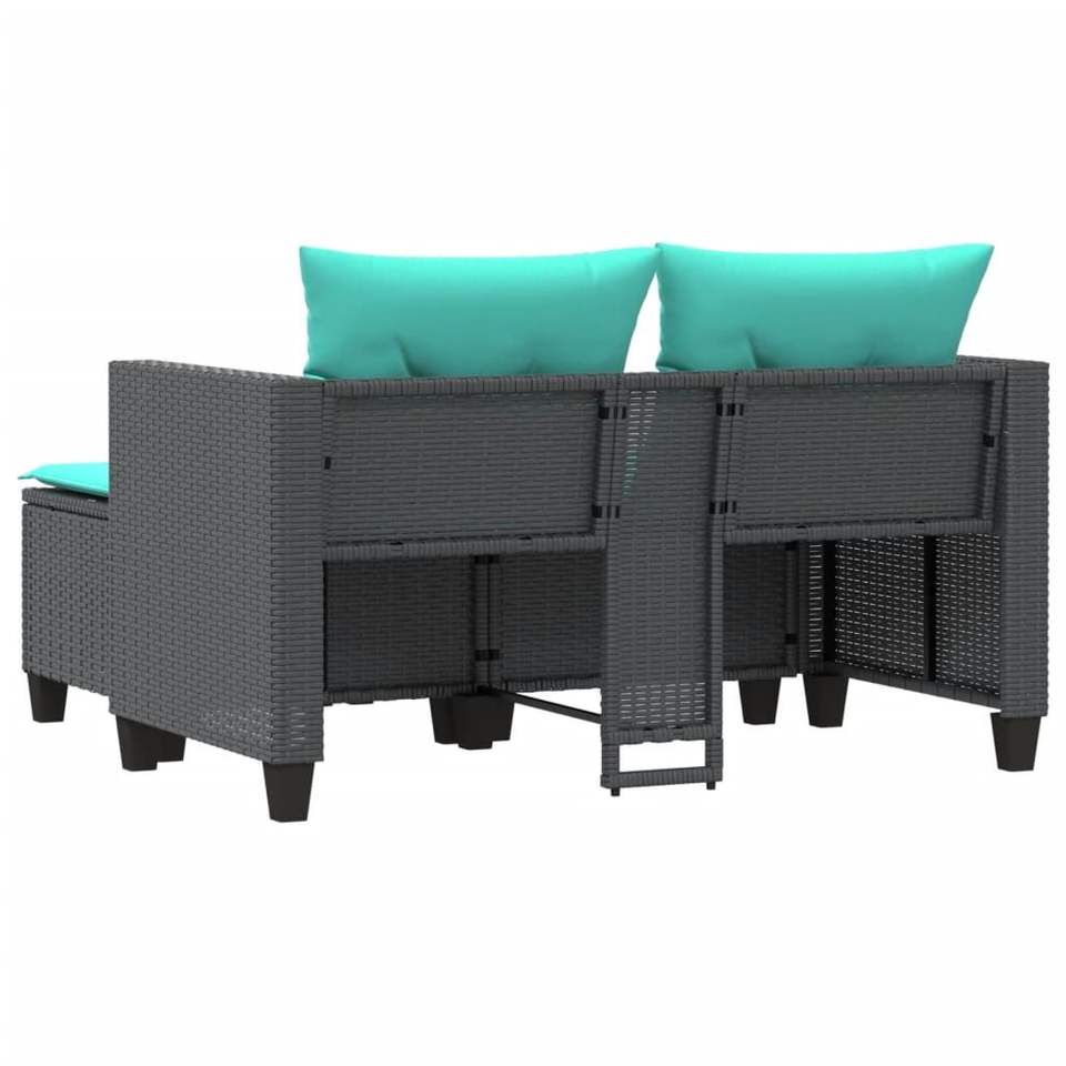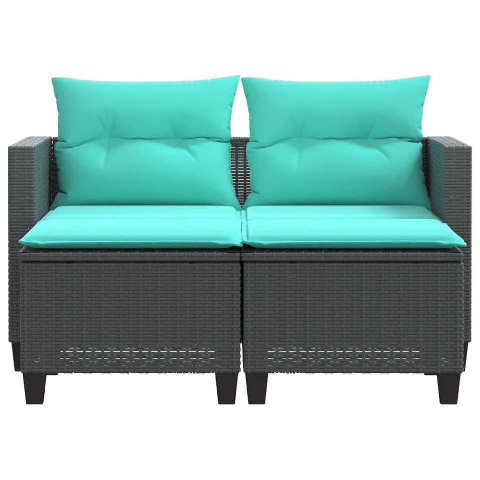 โซฟาหวายสังเคราะห์สีดำสำหรับสวน 2 ที่นั่ง โครงเหล็กเคลือบสีฝุ่น เฟอร์นิเจอร์กลางแจ้ง ดีไซน์ร่วมสมัย