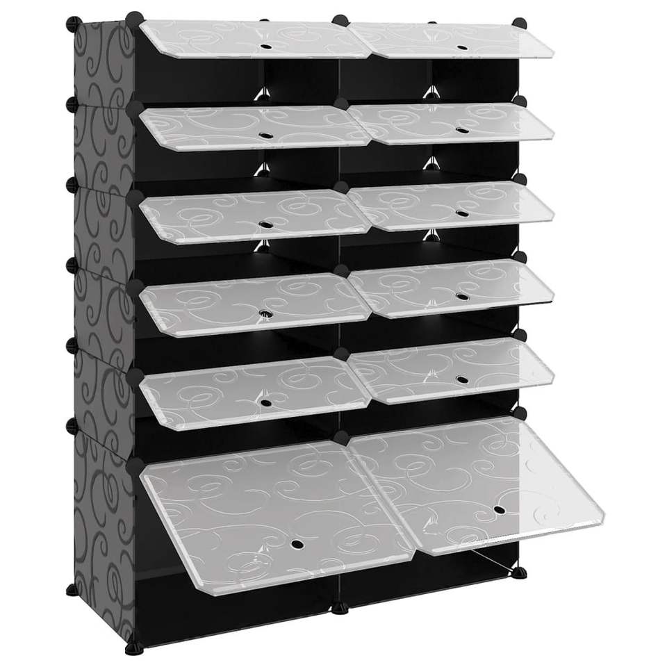 ชั้นวางรองเท้า PP (โพลีโพรพิลีน) สีดำและเหล็ก ขนาด 37 X 14.6 X 49.2 นิ้ว