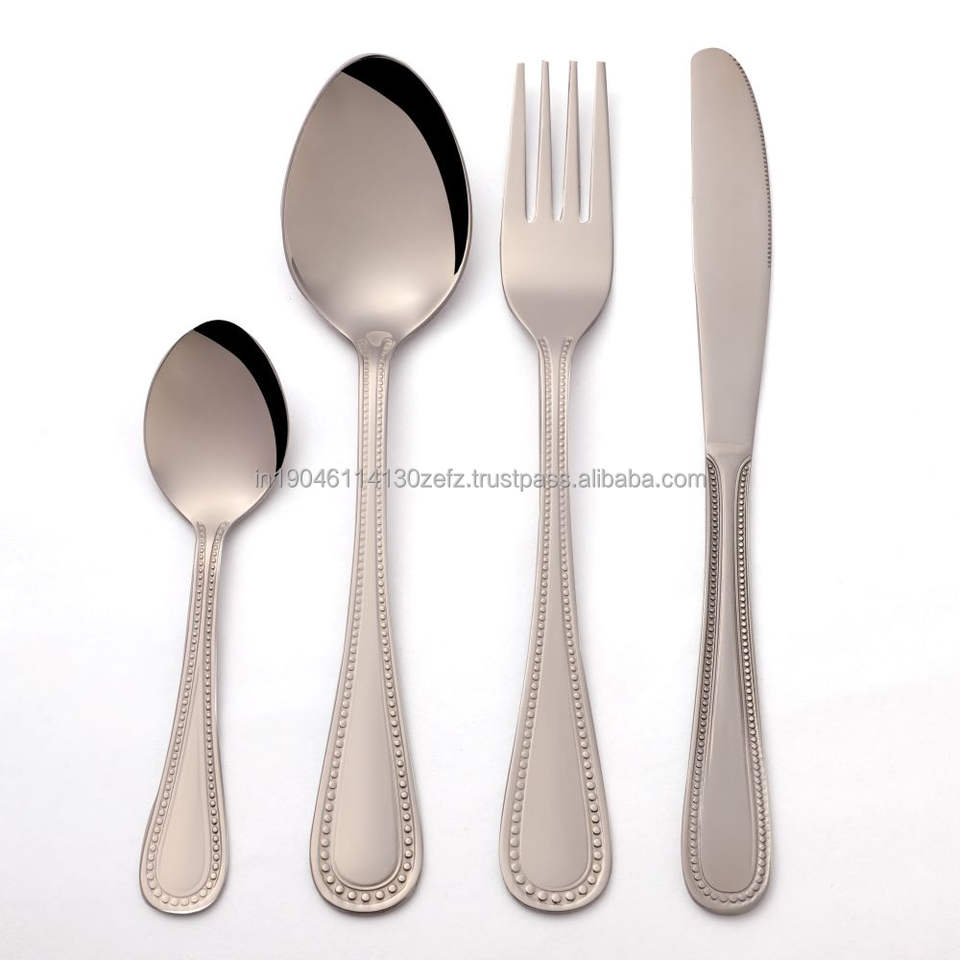 ลูกปัด PVD สีดําออกแบบช้อนส้อมสแตนเลส/ชุดเครื่องเรียบเกรด 202/304 ช้อนส้อมและมีดช้อนเด็ก - ผลิตในอินเดีย