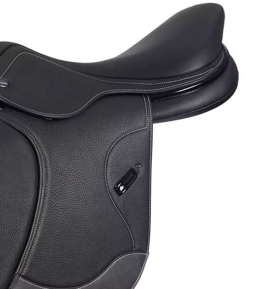 อานม้ากระโดดแบบอังกฤษทำมือ รุ่น ASH-ES-042 ยี่ห้อ ASHIMA EQUESTRIAN สีดำบุใยไฟเบอร์กลาส ขนาดสั่งทำได้ คุณภาพสูงสำหรับม้า