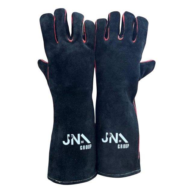 Black Palm Cow Split Leather Welding Gloves with Fire Protection Heat Resistant Safety Gloves in Red