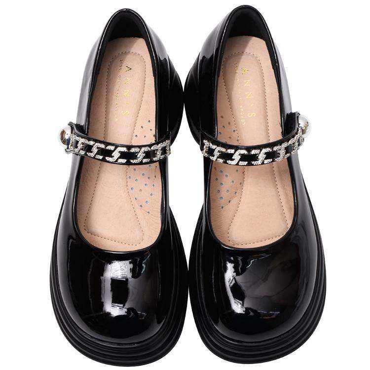 รองเท้า Mary Jane แพลตฟอร์มหนังสิทธิบัตรสีดำ