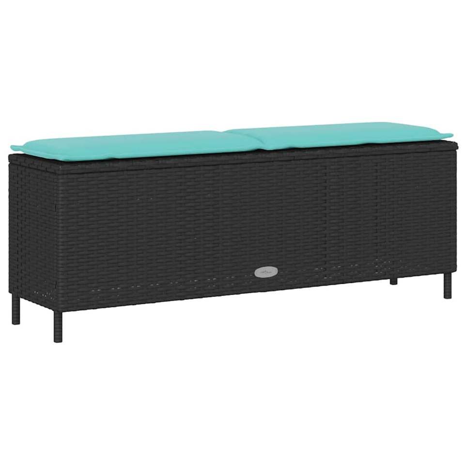 ม้านั่งลานกลางแจ้งสีดำพร้อมเบาะรองนั่ง 43.3"x11.8"x15.9" เฟอร์นิเจอร์กลางแจ้งหวายโพลีสุดหรู