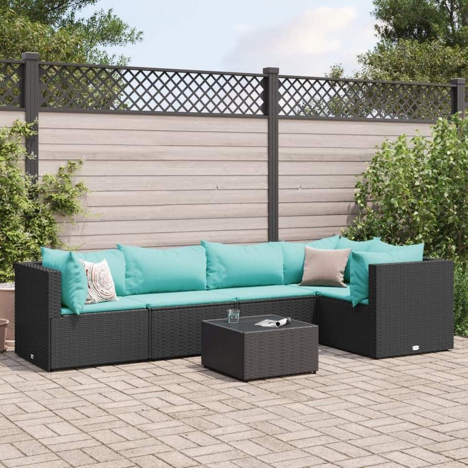 ชุดโซฟาพักผ่อนกลางแจ้งสีดำพร้อมชุดสวนสีฟ้าน้ำทะเล