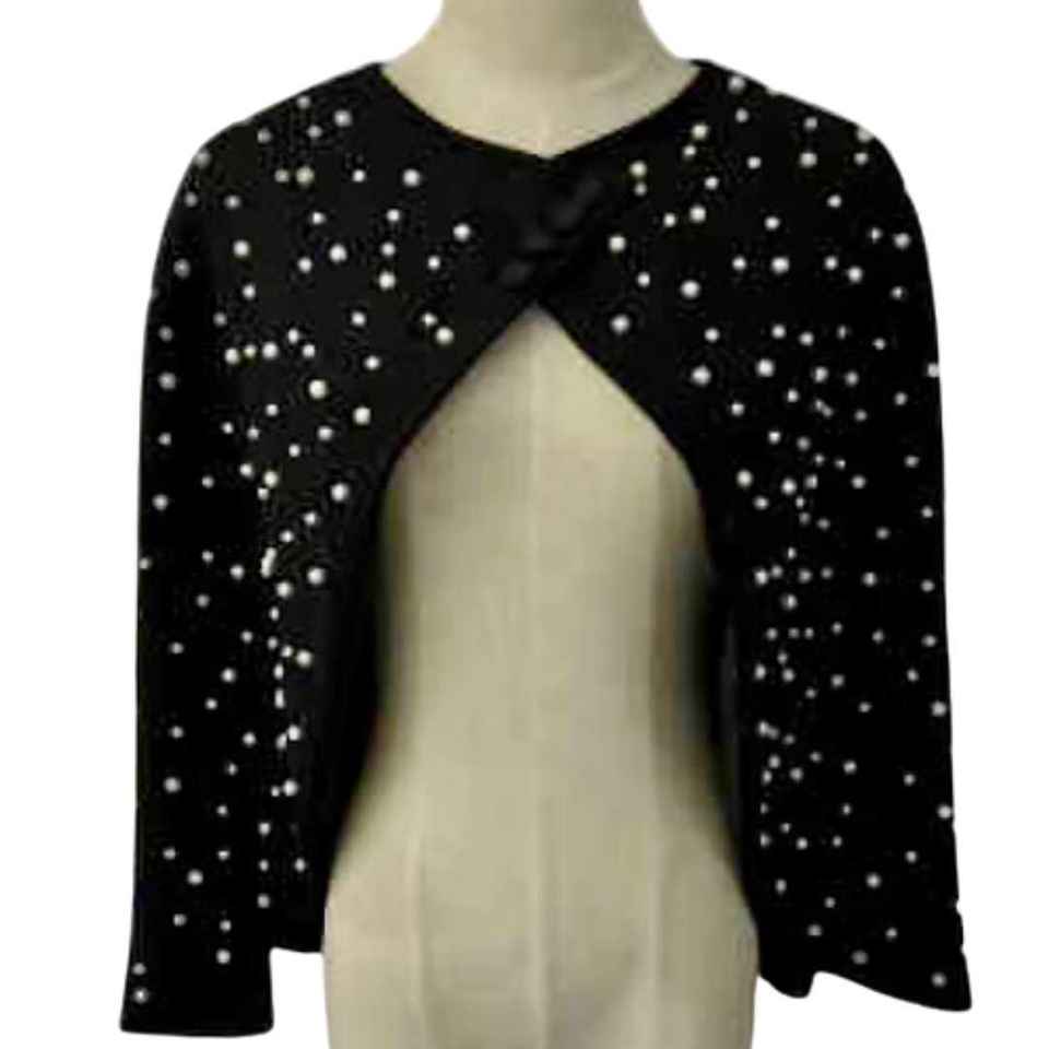 ผ้าคลุมไหล่อะคริลิคสีดำประดับมุกสำหรับผู้หญิง แขนยาว ดีไซน์หรูหรา สำหรับงานเลี้ยงตอนเย็น ผ้าคลุมแฟชั่นสำหรับงานพิธีการ สามารถปรับแต่งได้ตามต้องการ สินค้าจากบูติก