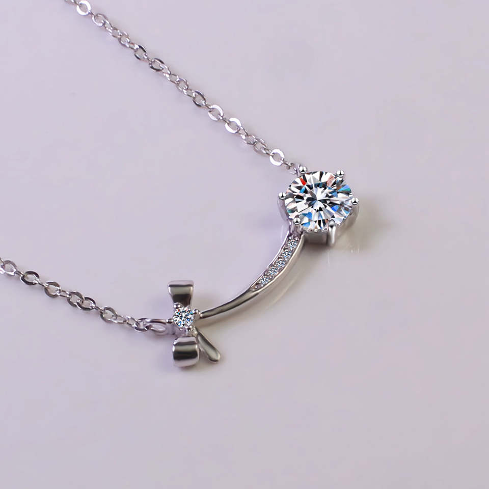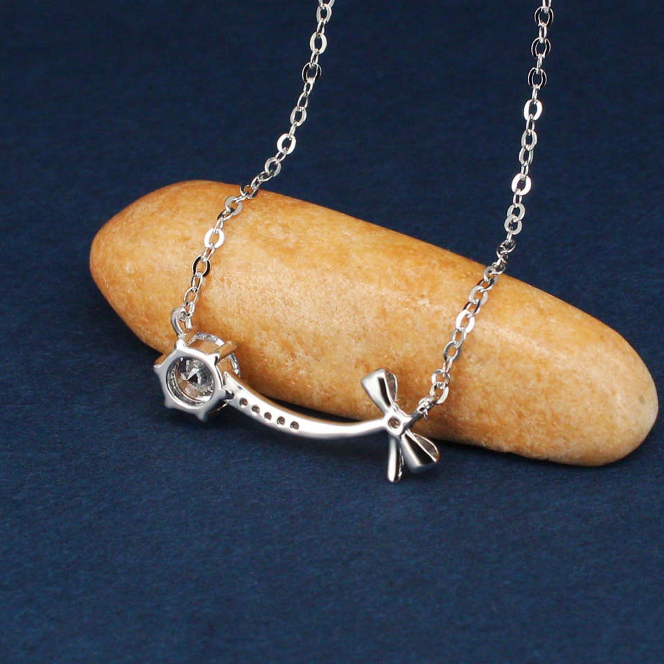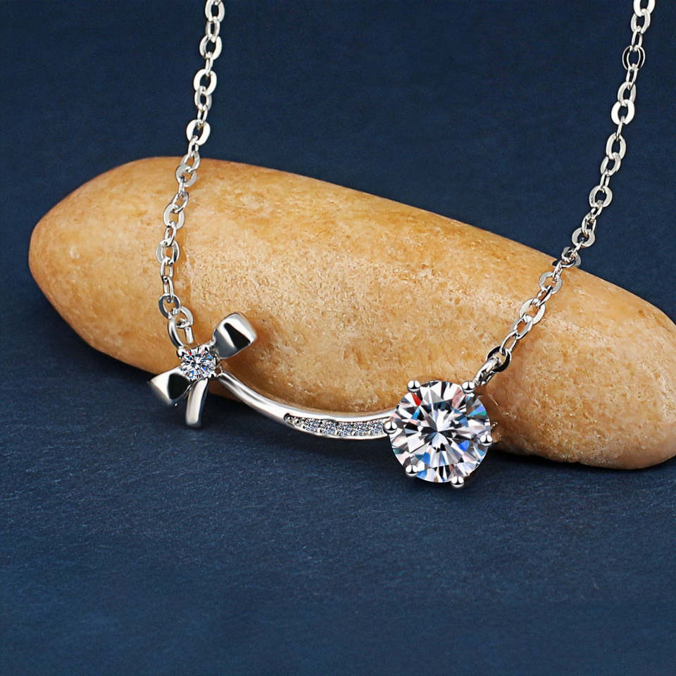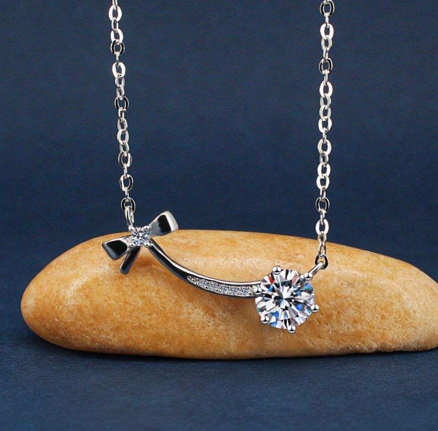 สร้อยคอเงินแท้ S925 ดีไซน์ทันสมัย ประดับมุกดำ พร้อมจี้รูปโบว์ ประดับเพชรโมอิสซาไนต์ 1 กะรัต ระดับ VVS1 สำหรับผู้หญิง เหมาะสำหรับงานแต่งงาน