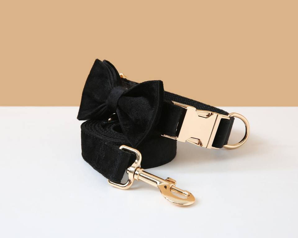 ชุดโบว์ตะกั่วแบบกำหนดเองสีดำชุดเต็มสามารถปรับแต่งได้ปลอกคอสุนัขและสายจูงขนาดเล็กสำหรับเด็กผู้ชาย/ผู้ชาย