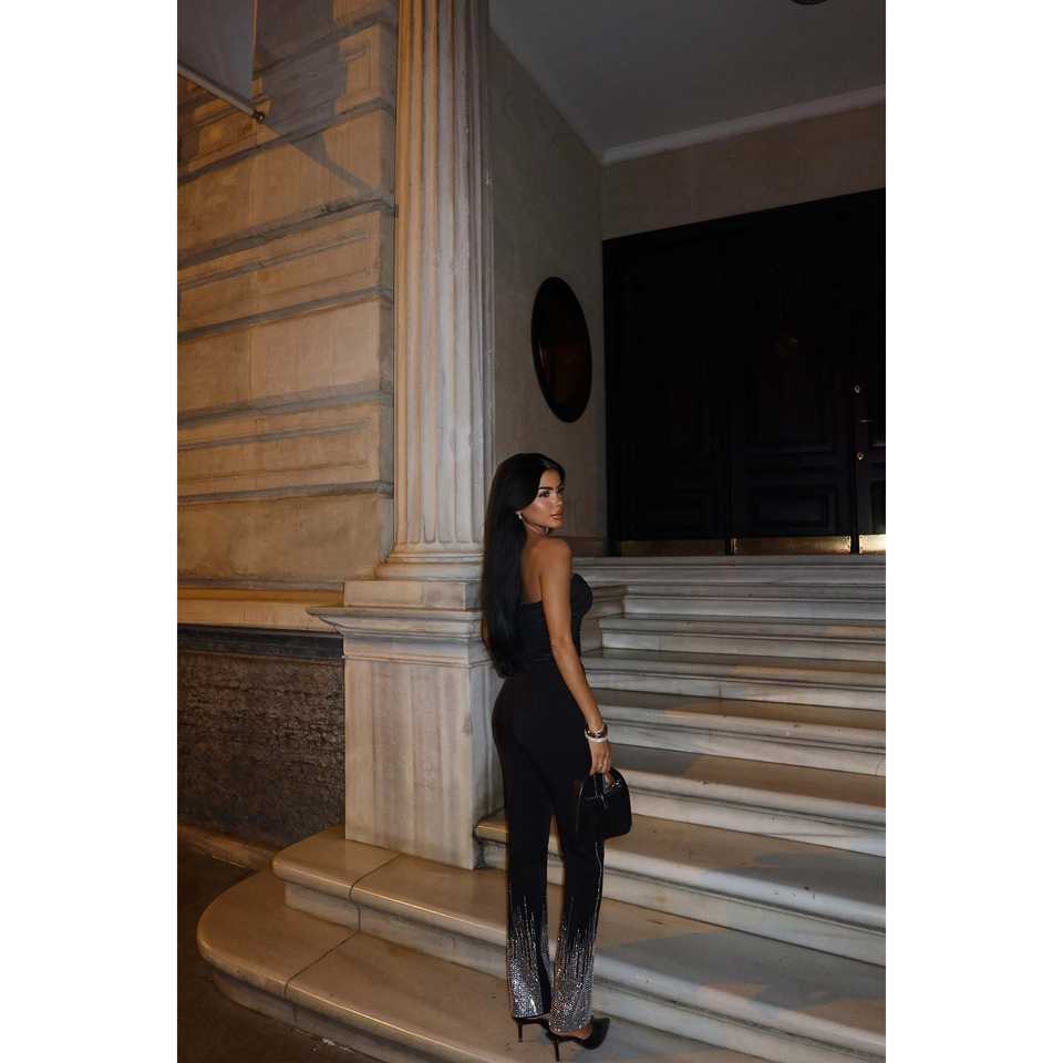 กางเกงขาบานเอวสูงสีดำประดับกลิตเตอร์สำหรับผู้หญิง ระบายอากาศได้ดี ขอบเอวยางยืด ความยาวระดับเข่า ใช้งานได้หลากหลายสำหรับทำงานและพักผ่อน