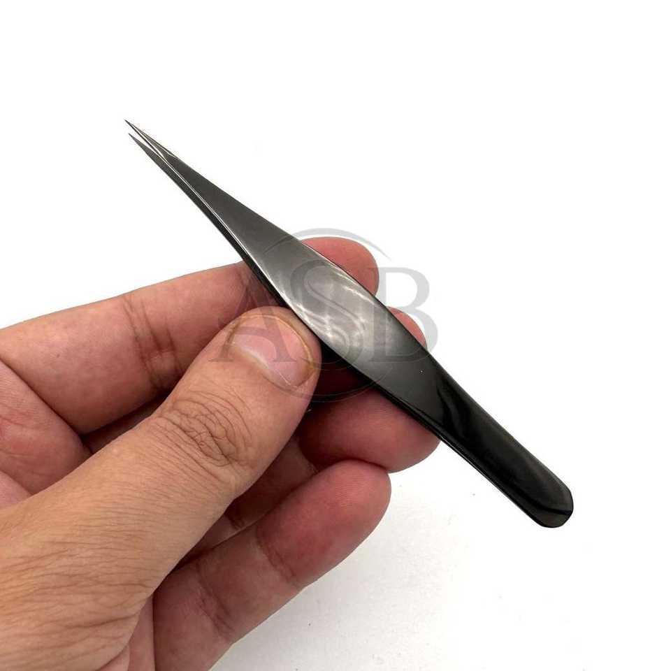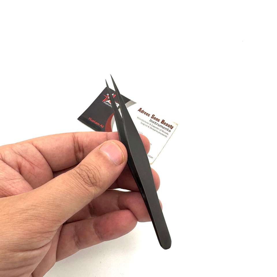 แหนบปลายแหลมพลาสม่าสีดำปากคีบคิ้วคมแหนบแต่งโลโก้ตามสั่งพิมพ์ลายสวยงามทำจากสแตนเลสบริการ OEM