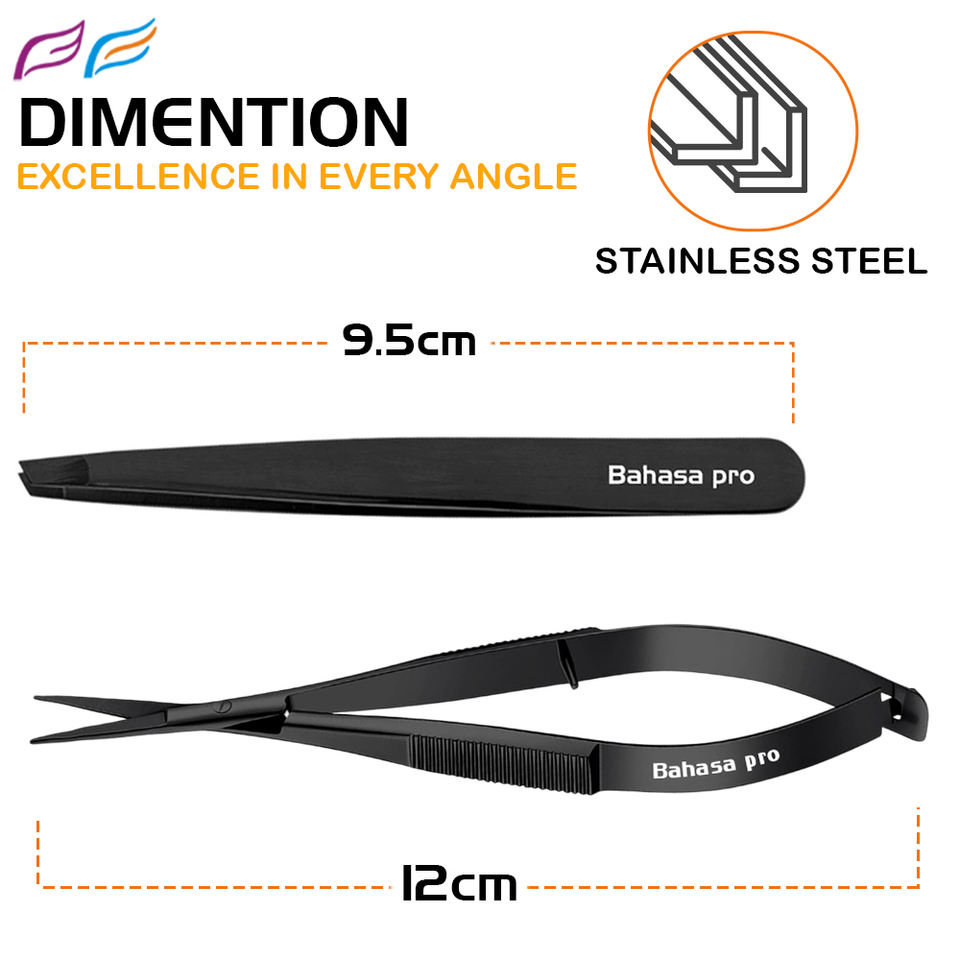 แหนบปลายเฉียงสีดำ ผลิตจากสแตนเลส พร้อมสปริงและโลโก้จาก Bahasa Pro