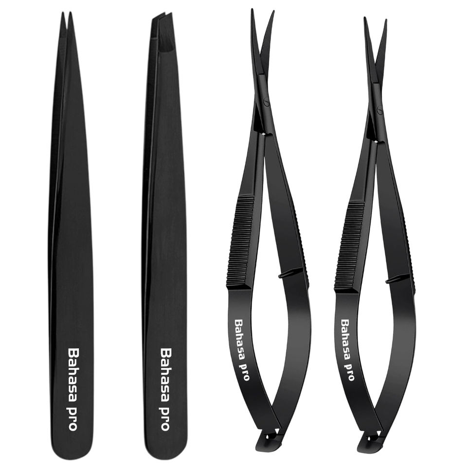 แหนบปลายเฉียงสีดำพลาสมา สแตนเลส แหนบปลายแหลม เครื่องมือกรรไกรสปริง รับทำโลโก้โดยบาฮาซา โปร