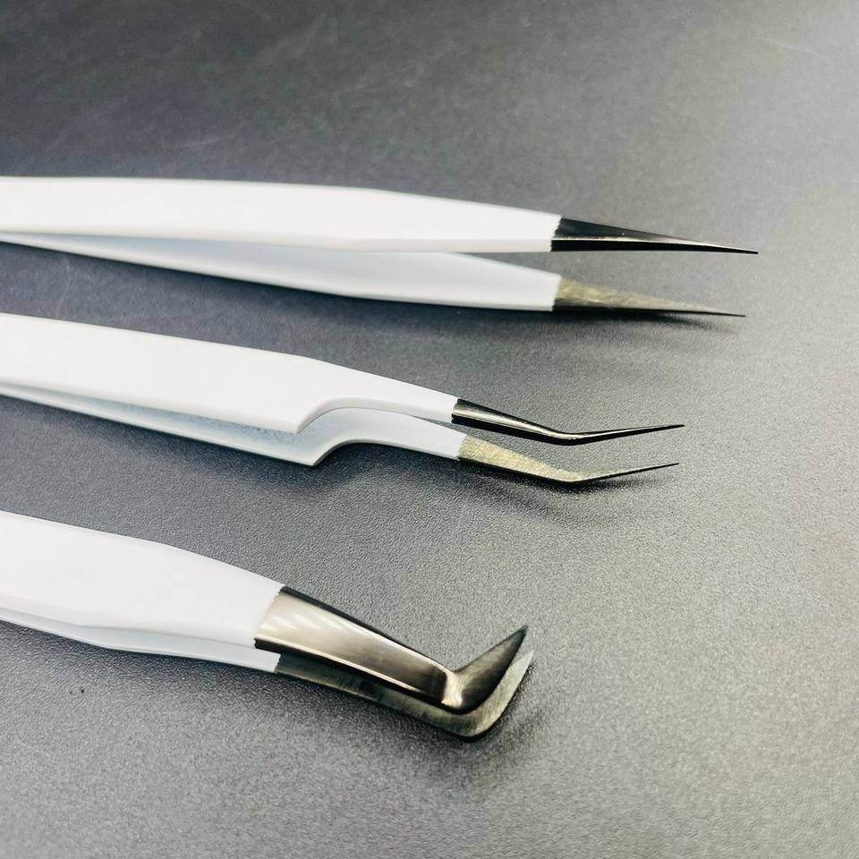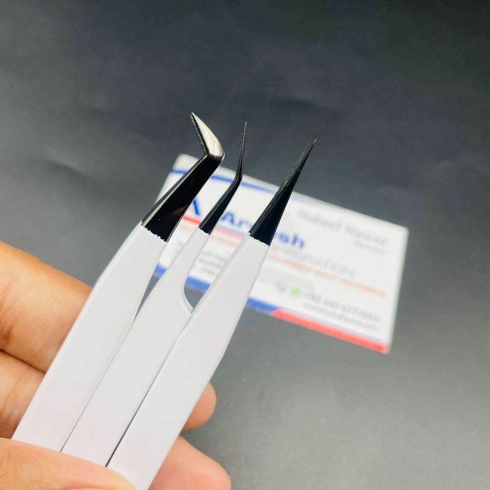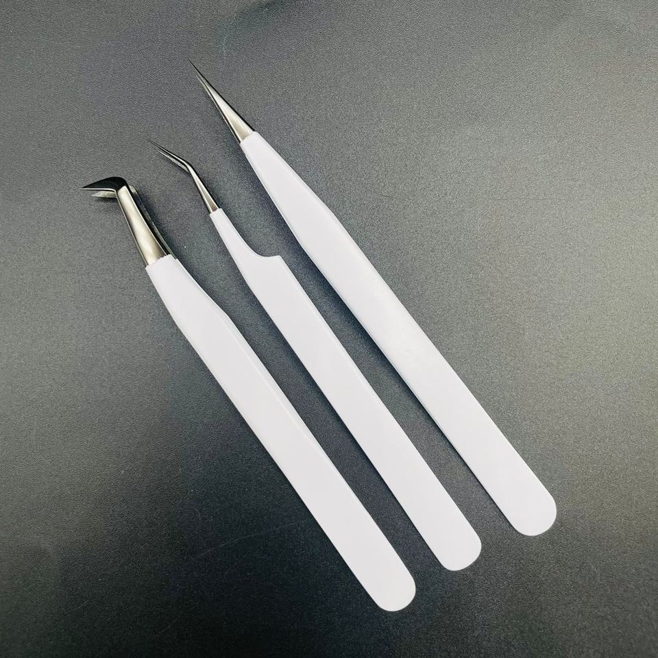 ปลายปากคีบต่อขนตาแบบพลาสมาสีขาว พร้อมโลโก้สแตนเลสสั่งทำ คีบต่อขนตาแบบมืออาชีพ จับกระชับพิเศษ ความยาว 11 ซม. ขายส่ง