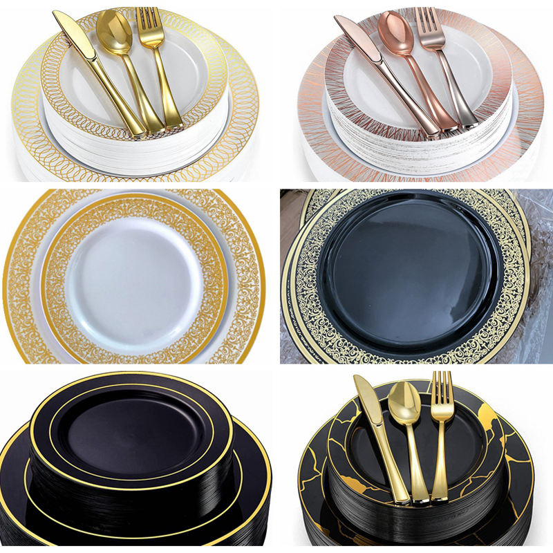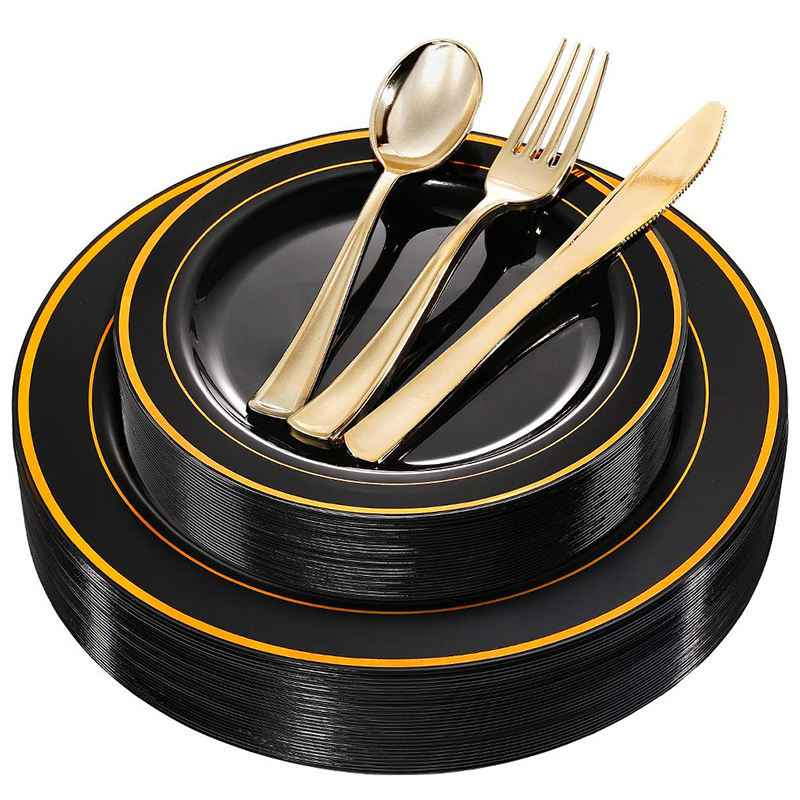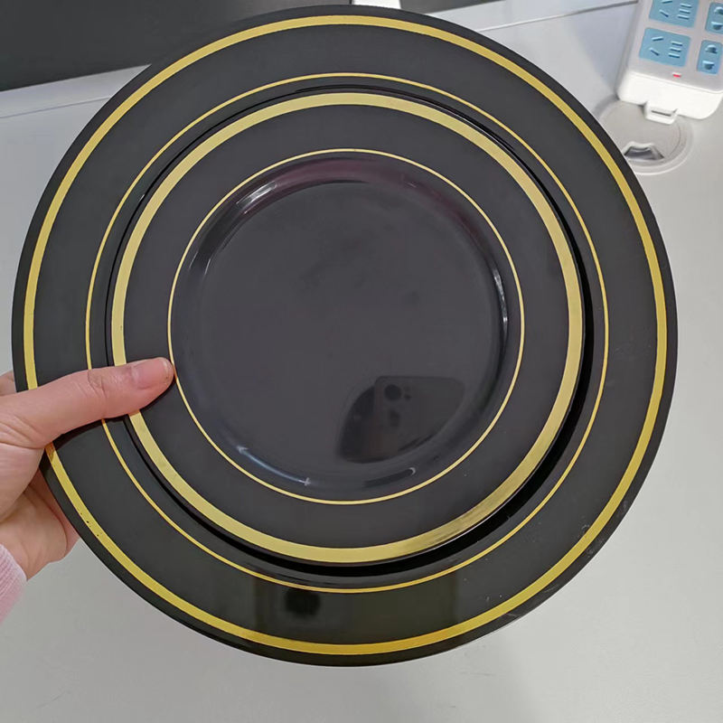 Product Name:Gold rim black plastic plate