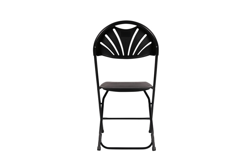 เก้าอี้พลาสติกสีดำพับได้พร้อมพัดลมด้านหลังที่นั่งสบายสำหรับโรงแรมสำนักงานห้องเรียนกิจกรรมกลางแจ้งรับประทานอาหารแบบสบายๆ