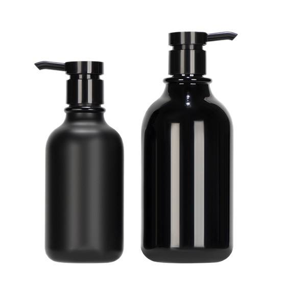 ขวดปั๊มพลาสติกสีดำ 300 มล. และ 500 มล. สำหรับบรรจุภัณฑ์ผลิตภัณฑ์ดูแลส่วนบุคคล เช่น ครีมอาบน้ำ เจลอาบน้ำ และโลชั่น