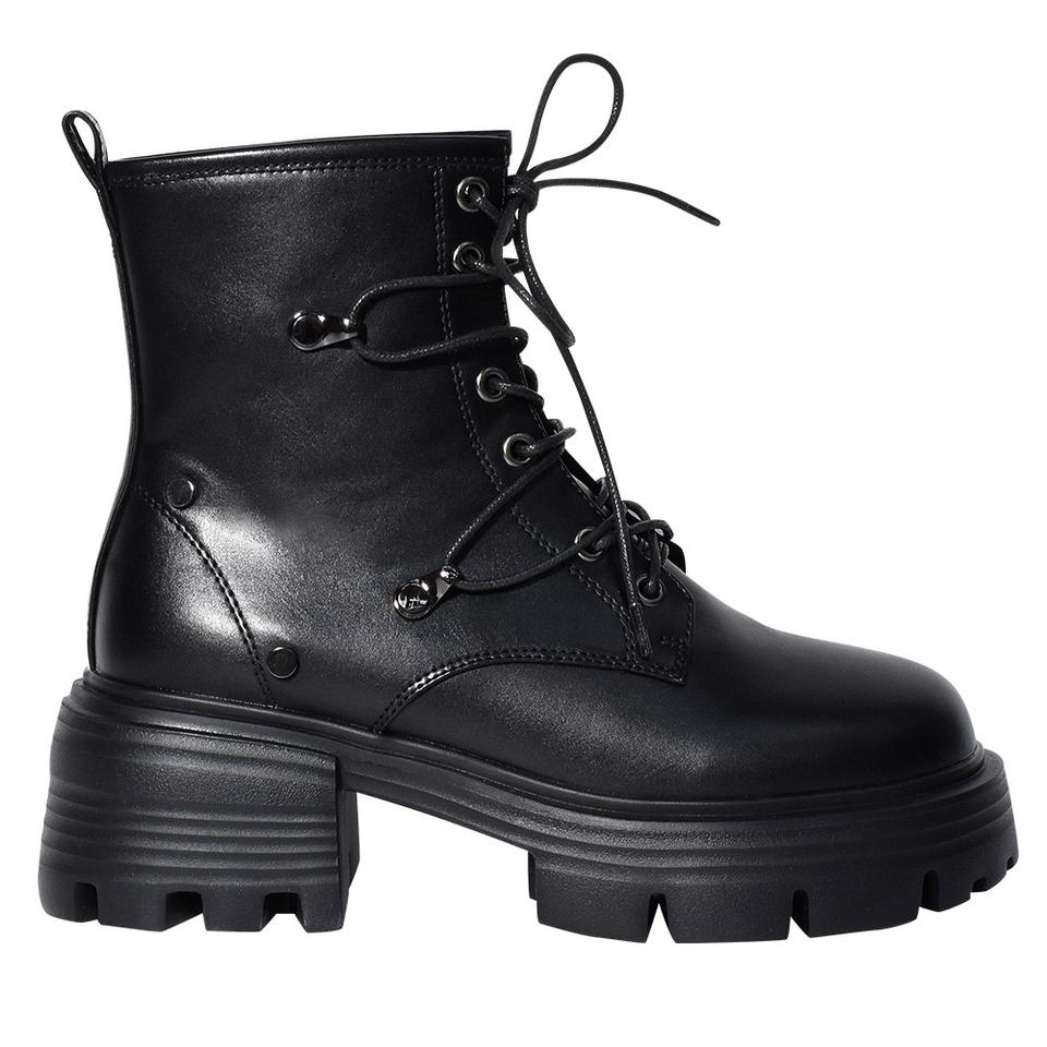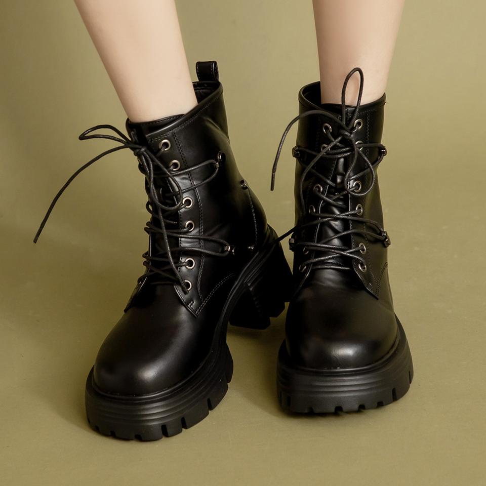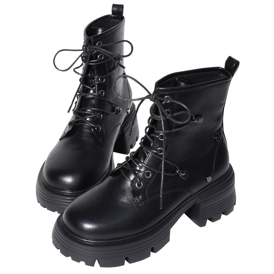 รองเท้าบูทแบบผูกเชือกสีดำ พื้นรองเท้าหนัง พร้อมแผ่นรองรับอุ้งเท้า