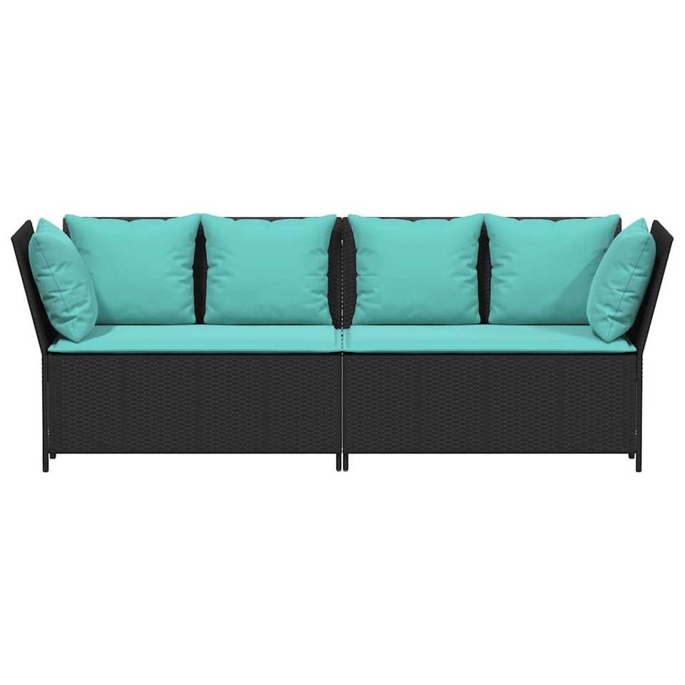 โซฟาลานบ้านหวายโพลีสีดำพร้อมเบาะรองนั่งโซฟาในสวน
