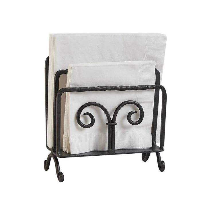 ที่ใส่กระดาษทิชชูและกระดาษเช็ดปากเหล็กดัดลายสวยงามเคลือบสีดำสไตล์เรโทรสำหรับห้องครัวและโต๊ะอาหาร สีดำ